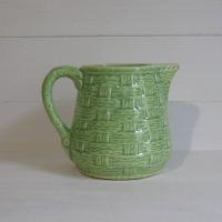 Ancien pichet en barbotine verte Digoin Sarreguemines décor vannerie