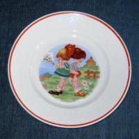 Ancienne assiette à dessert décor d'enfants intitulée Bouderie