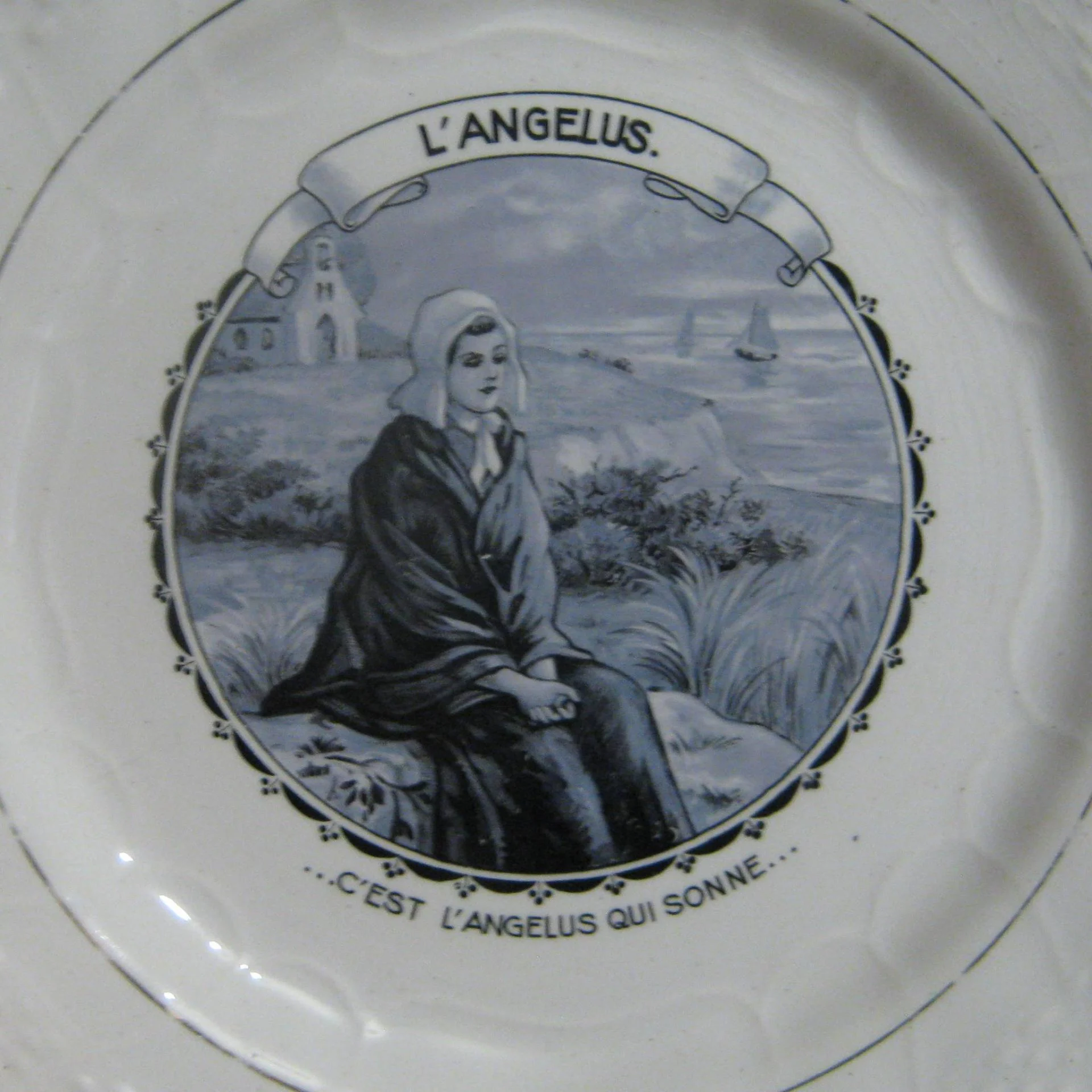 Ancienne assiette l'angélus ...c'est l'angélus qui sonne... Orchies Moulin des Loups à Hamage Nord France Nouveau