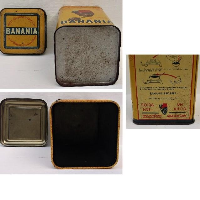 Jolie boite publicitaire ancienne en tôle lithographiée Banania 1kg (vide) marquée "RIZ"