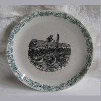 Assiette ancienne de la faïencerie Lorraine FENAL Frères F F Pexonne train oies vache