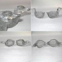 Paire de salière-poivrière en verre moulé transparent représentant des canards