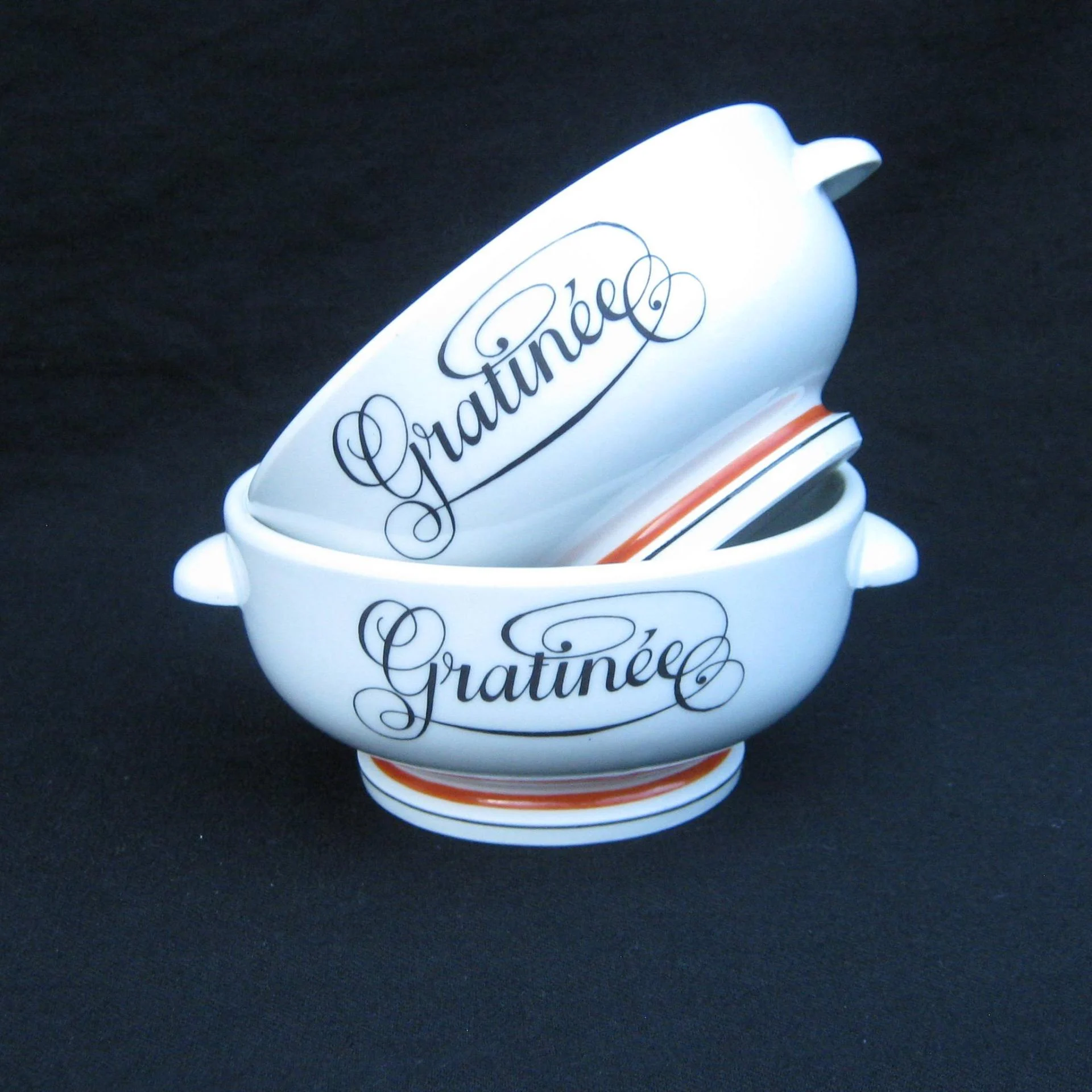 Bol à oreilles gratinée porcelaine d'Auteuil service bistrot (x2) Nouveau