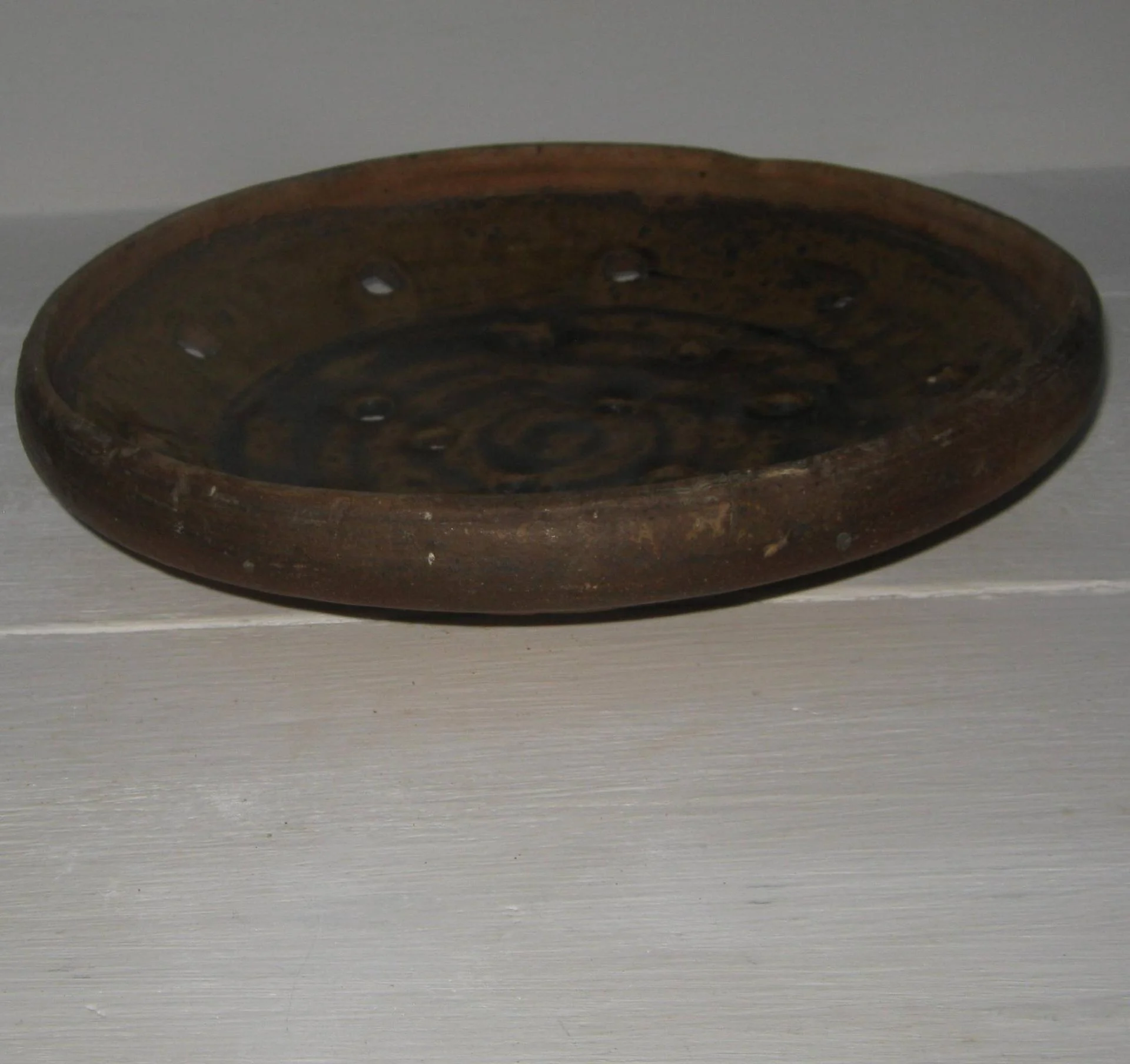 déco cuisine ustensile ancien grès de Puisaye assiette à fromage faisselle en grès