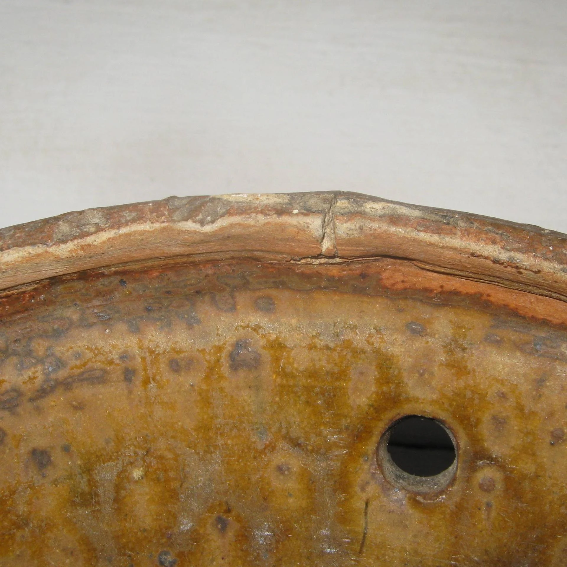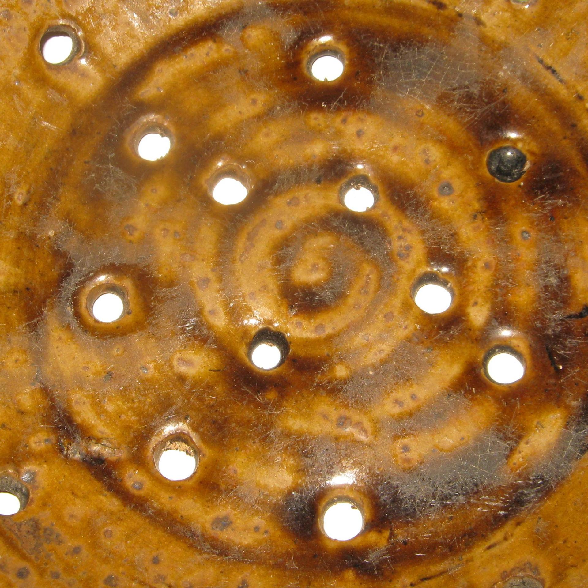 Ancien égouttoir à fromage avec bec verseur, faisselle ancienne XIXème en grès de Puisaye dite aussi dans certaines régions fercelle, fecelle ou chéon