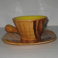 Grande tasse et sa sous-tasse faux bois intérieur jaune Vallauris vintage